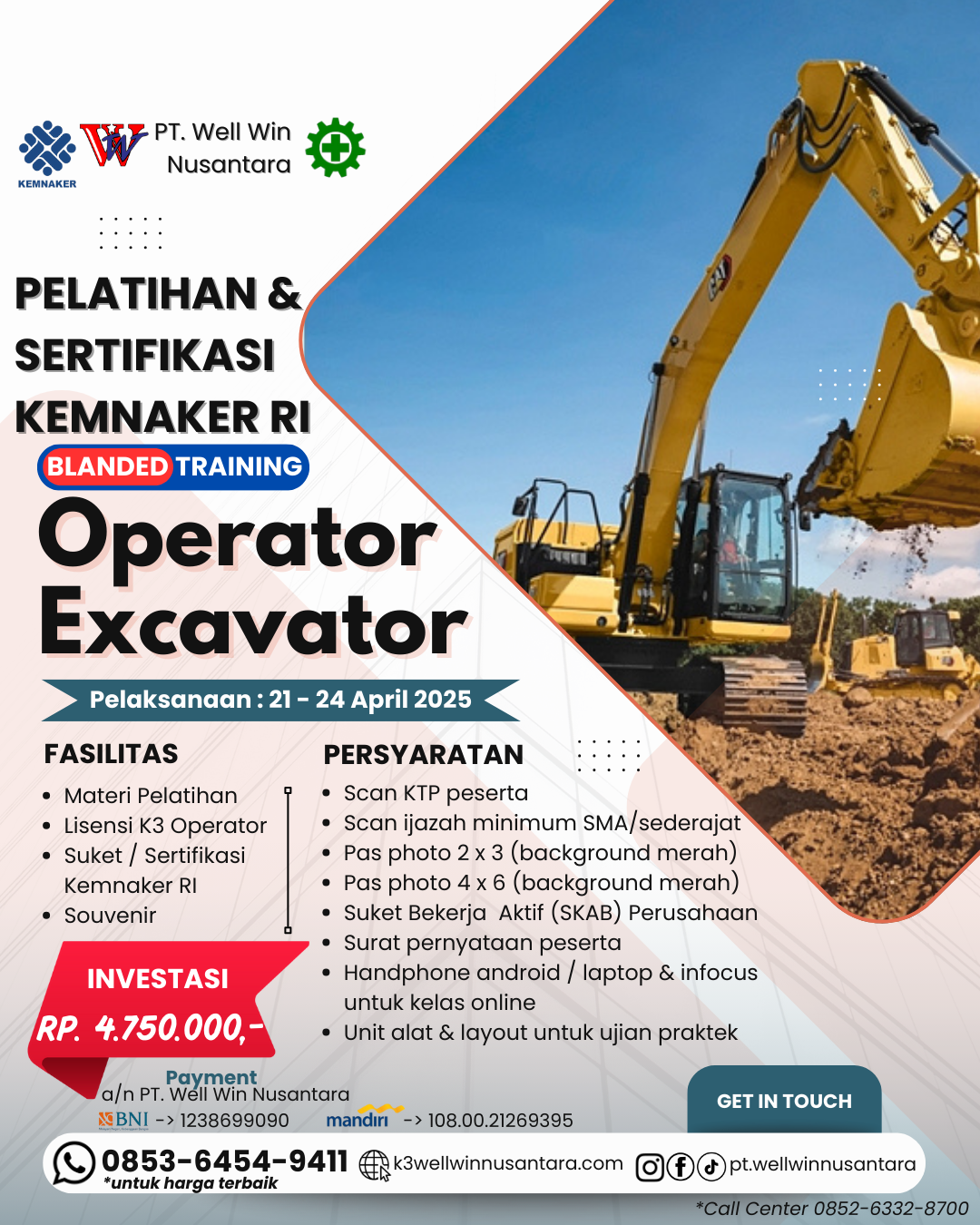 "Sertifikasi Operator Ekskavator Kemnaker RI: Pelatihan Terpercaya untuk Karir Cemerlang 21-24 April 2025!"