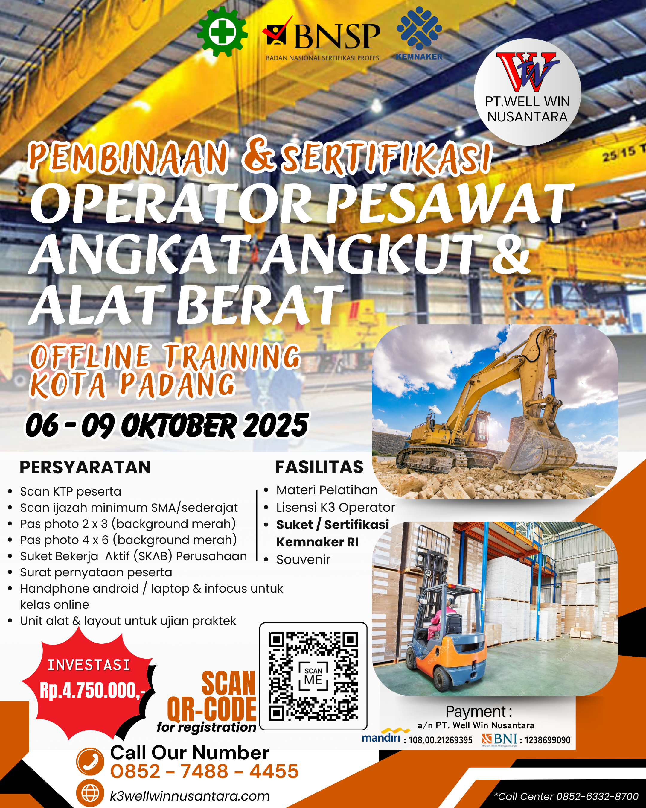 Ikuti Pelatihan & Sertifikasi Operator Pesawat Angkat Angkut dan Alat Berat bersama PT. Well Win Nusantara.